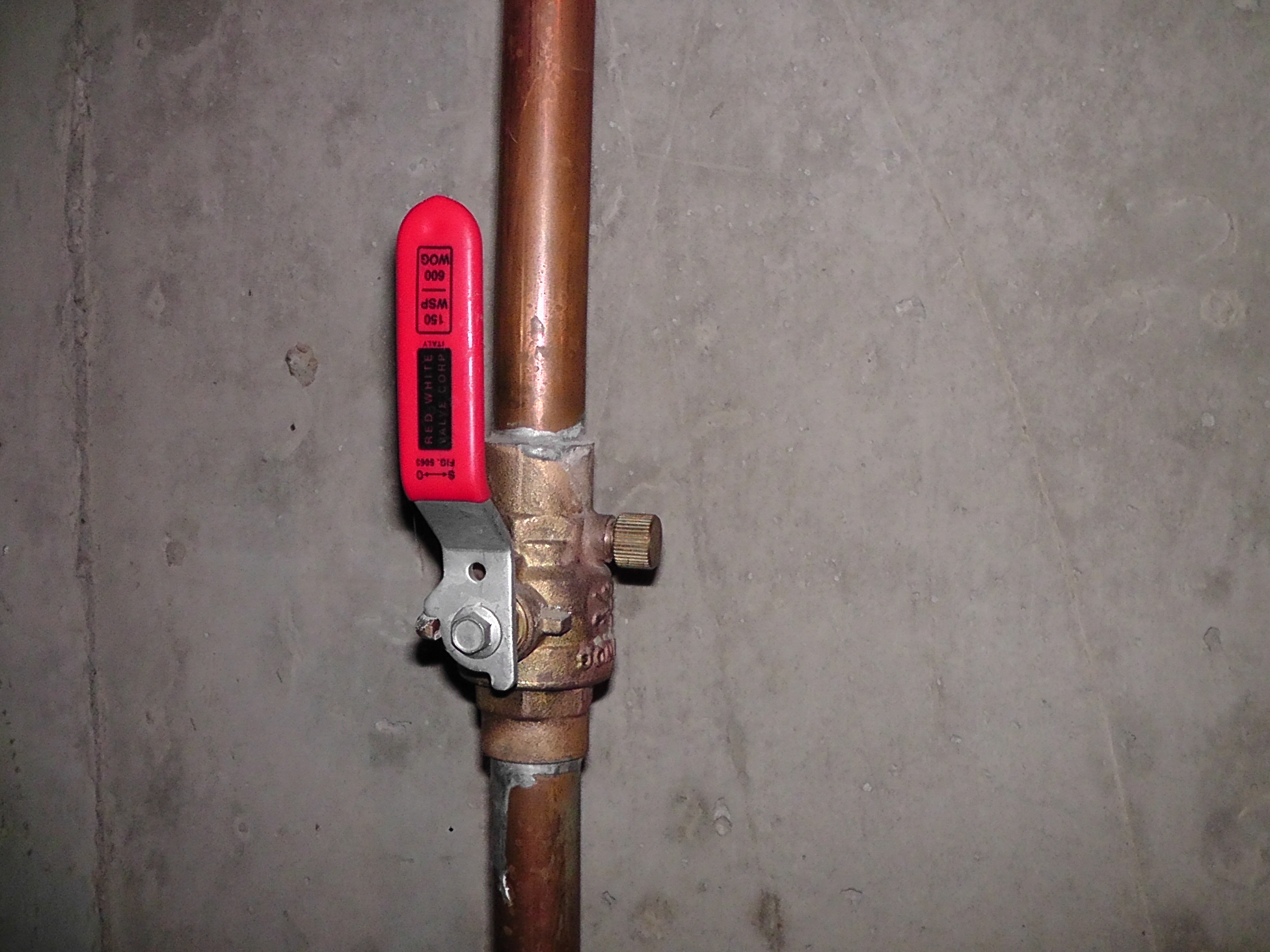 4.  Bring a large cup, bowl or bucket and go back to your basement or crawl space and open the drain to drain the back side of your backflow and pipe.  These drains are usually attached to the valve that you shut off the system with. Pictured below.  They are usually a little tiny cap that unscrews to let the water out.  But it is very important to do steps 1-3 before opening this drain cap or you willl not get all of the water out.   When done draining, leave this cap loose or unscrewed with a bucket underneath to catch any dripping if possible.